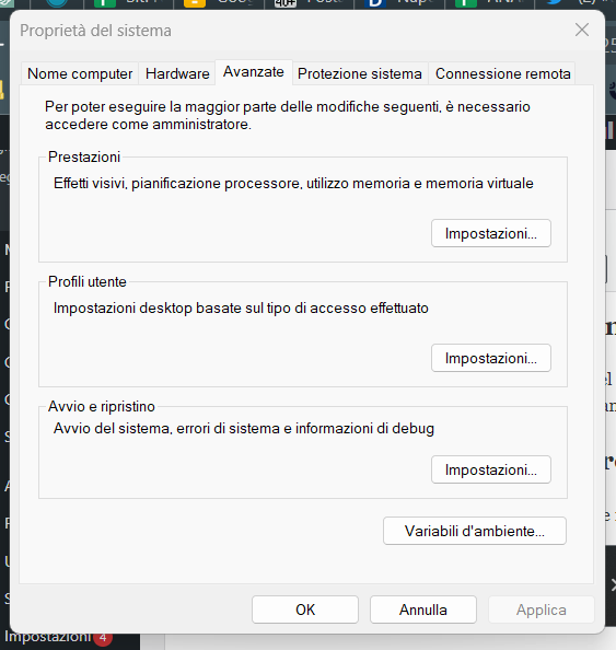 - Seleziona la scheda Avanzate e fai clic sul pulsante Impostazioni nella sezione Prestazioni.